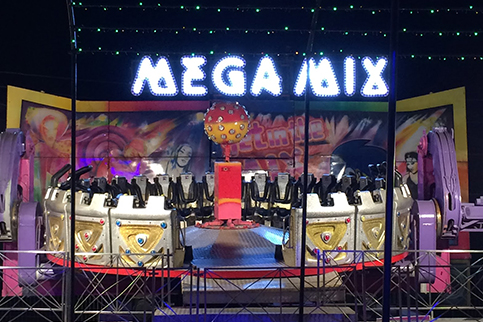 Wahana ekstrim yang menantang selanjutnya adalah Megamix. Bentuknya bundar seperti piring raksasa, Anda akan naik duduk dipinggir piringan tersebut. Piringan tersebut akan diputar dengan tiga arah berbeda, berputar miring, lalu dibolak-balikkan sehingga membuat kepala berada di bawah dan kaki di atas melawan gravitasi.