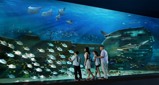 Jika Anda berada di S.E.A. Aquarium, Anda seperti masuk ke dunia bawah air. Musik instrumental mengalun, mengantar traveler masuk lebih dalam ke ‘jantung’ akuarium yakni Open Ocean. Inilah viewing panel terbesar didunia, dengan panjang 36 meter dan tinggi 8,3 meter!