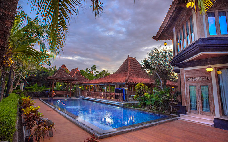 Dari namanya, tentu Anda sudah bisa menebak bahwa hotel unik di Jogja yang satu ini punya tema tentang Jawa. Ya, benar sekali, bangunan hotelnya menggunakan desain rumah Joglo khas Jawa dengan unsur kayu mendominasi. Saat tiba di sana, Anda akan merasakan suasana ala kampung Jawa jaman dulu kala.