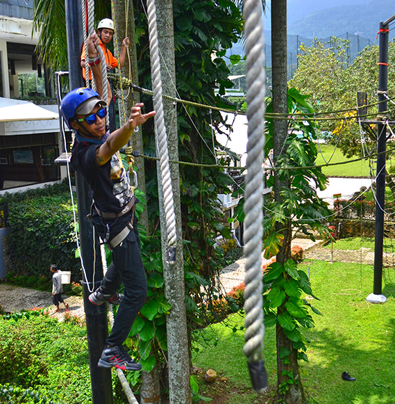Wahana outbound High Rope sangat seru untuk dicoba. Anda diharuskan melewati beberapa rintangan seperti jembatan tali pada ketinggian tertentu. Kosenterasi dan kekuatan otot-otot tangan maupun kaki sangat dibutuhkan bisa ingin berhasil melalui berbagai rintangan di wahana ini.